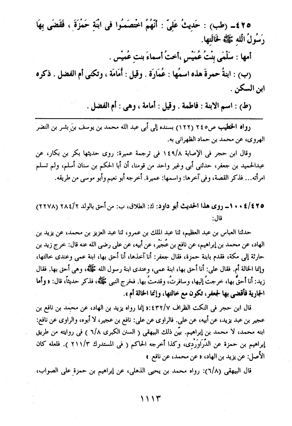 425- (طب): حديث علي: أنهم اختصموا في ابنة حمزة، فقضى بها رسول الله صلى الله عليه وسلم لخالتها.