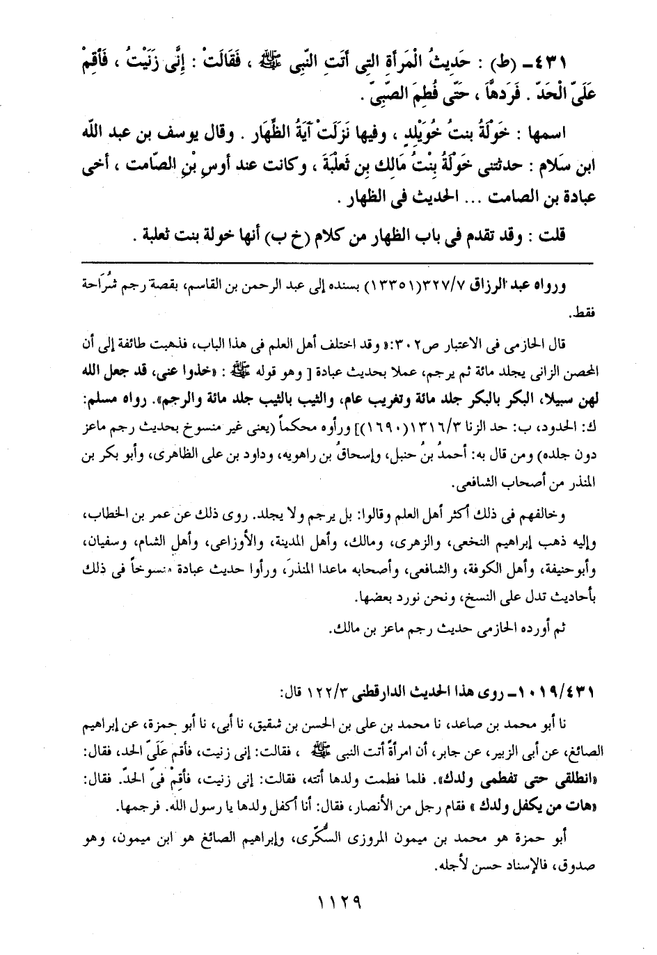 431- (ط): حديث المرأة التي أتت النبي صلى الله عليه وسلم، فقالت: إني زنيت، فأقم علي الحد. فردها، حتى فطم الصبي.