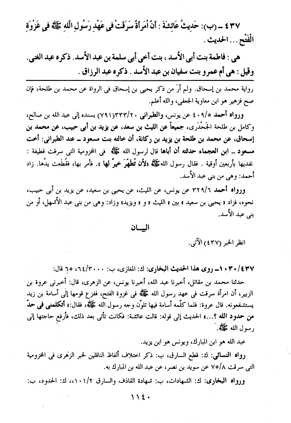 437- (ب): حديث عائشة: أن امرأةً سرقت في عهد رسول الله صلى الله عليه وسلم في غزوة الفتح .. .. الحديث.