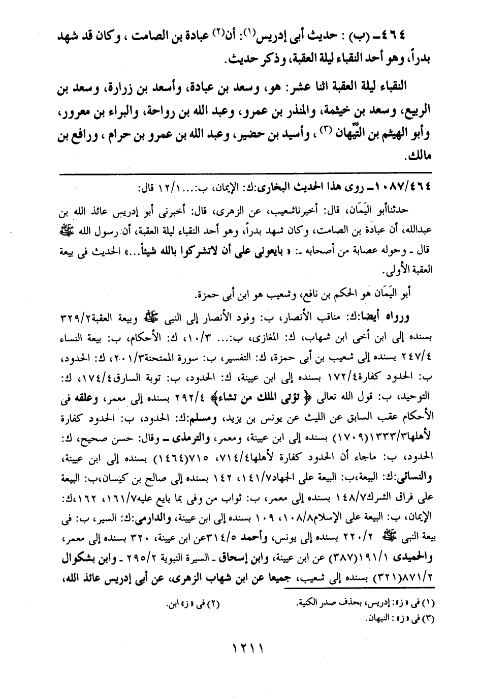 464- (ب): حديث أبي إدريس: أن عبادة بن الصامت، وكان قد شهد بدراً، وهو أحد النقباء ليلة العقبة، وذكر حديث.