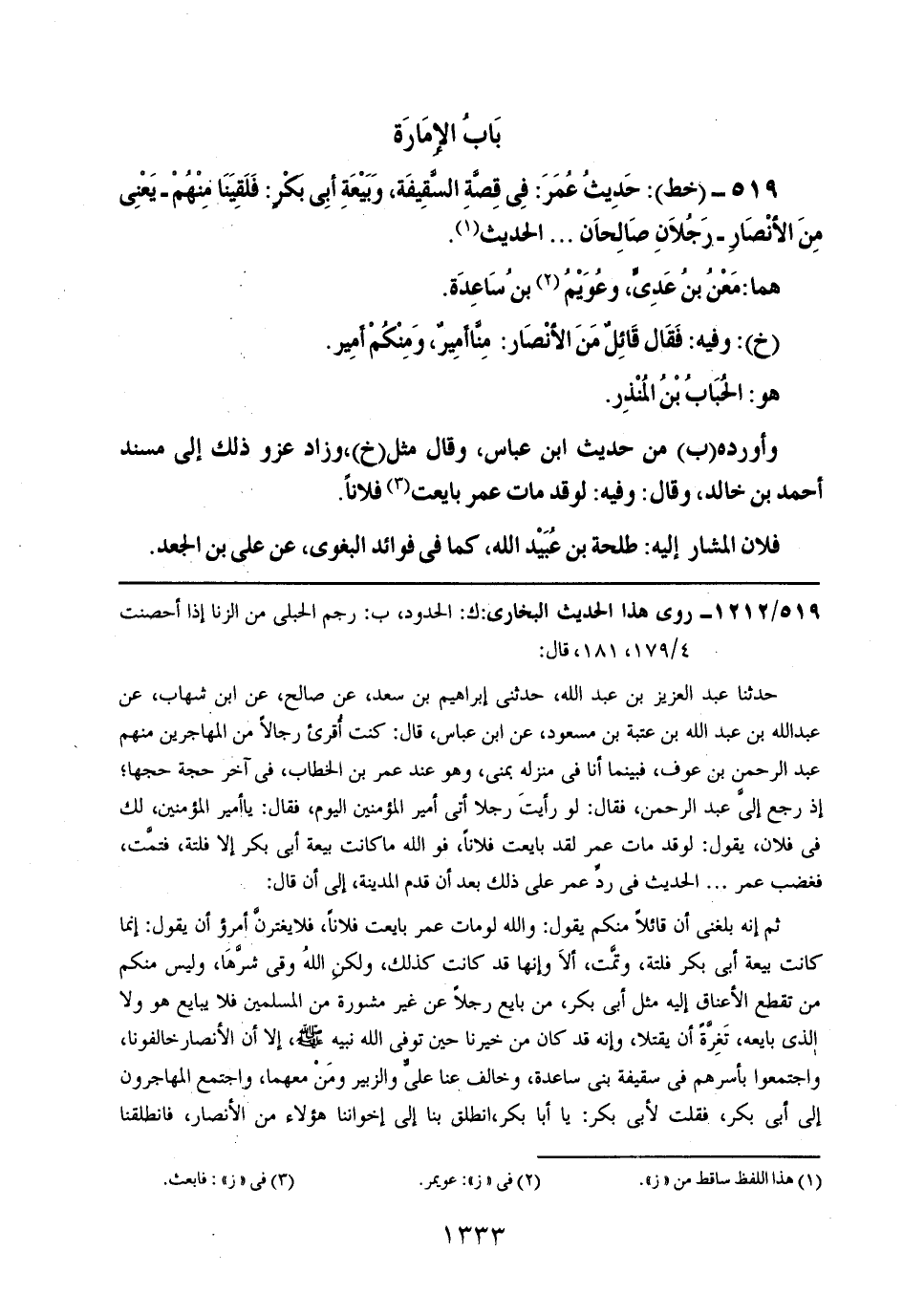519 - (خط): حديث عمر: في قصة السقيفة، وبيعة أبي بكر: فلقينا منهم -يعني من الأنصار- رجلان صالحان .. .. الحديث.