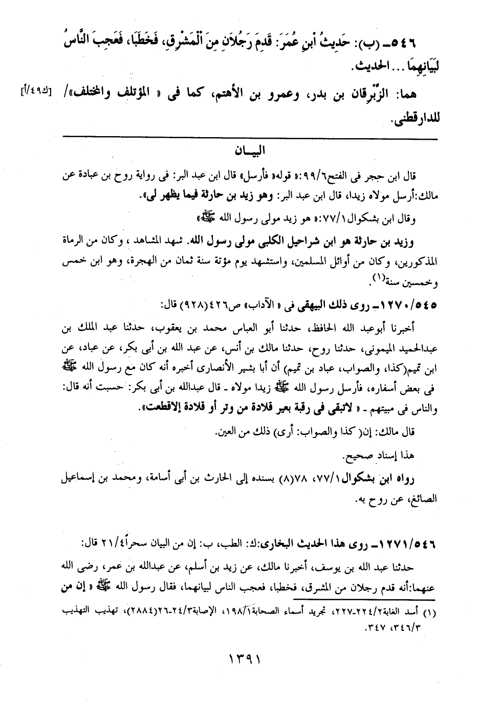 546- (ب): حديث ابن عمر: قدم رجلان من المشرق، فخطبا، فعجب الناس لبيانهما .. .. الحديث.