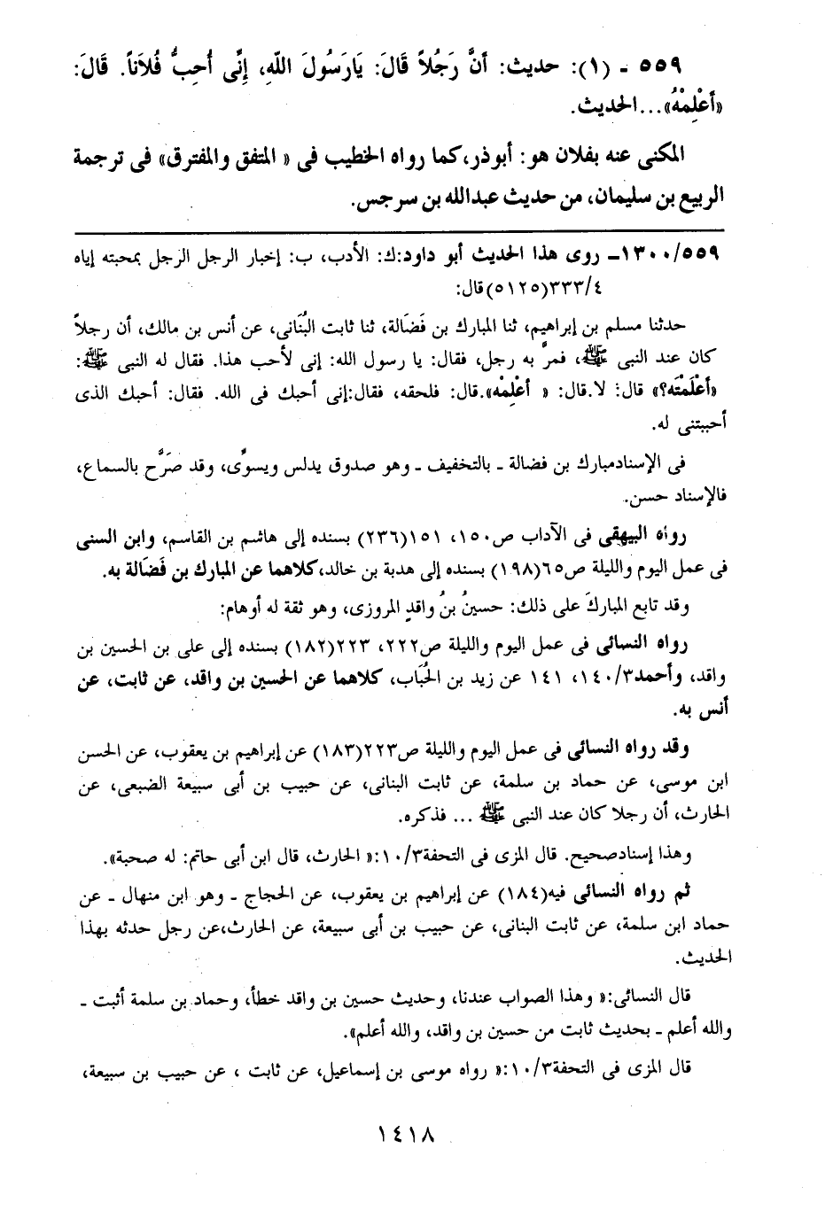 559- (1): حديث: أن رجلاً قال: يا رسول الله، إني أحب فلاناً. قال: ((أعلمه)) .. .. الحديث.