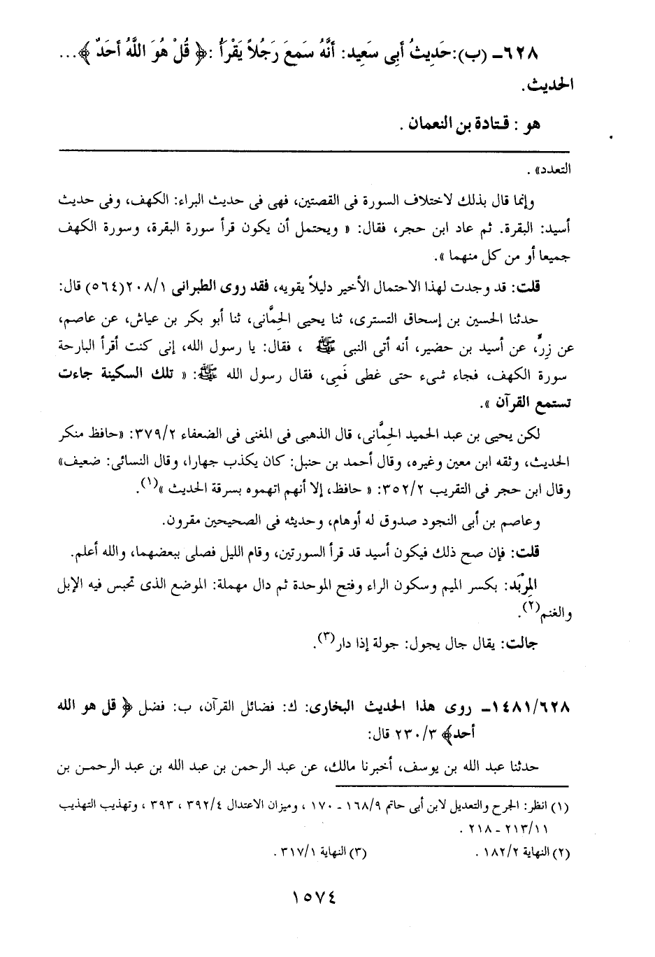 628- (ب): حديث أبي سعيد: أنه سمع رجلاً يقرأ: {قل هو الله أحدٌ} .. .. الحديث.