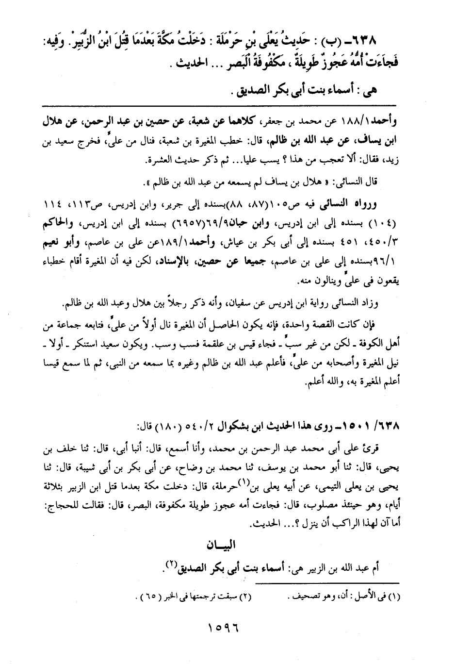 638- (ب): حديث يعلى بن حرمة: دخلت مكة بعدما قتل ابن الزبير. وفيه: فجاءت أمه عجوزٌ طويلةٌ، مكفوفة البصر .. .. الحديث.