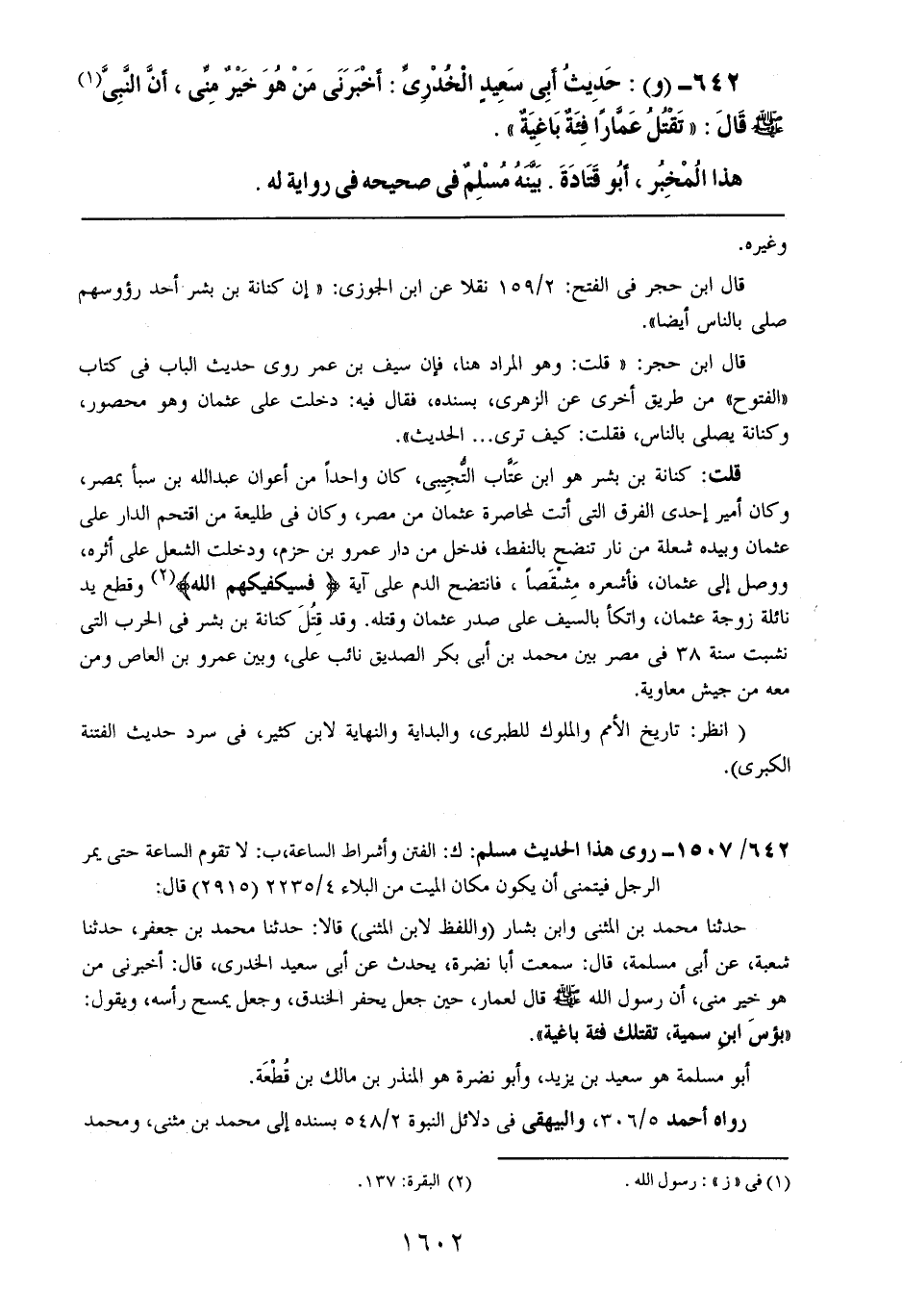 642- (و): حديث أبي سعيدٍ الخدريٍ: أخبرني من هو خير مني، أن النبي صلى الله عليه وسلم قال: ((تقتل عماراً فئةٌ باغيةٌ)).