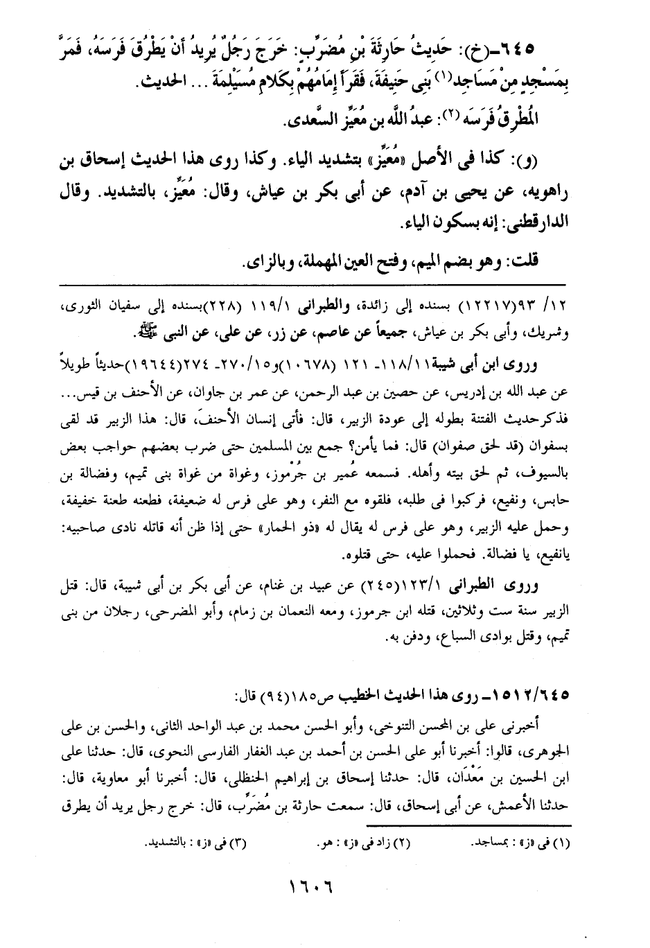 (و): كذا في الأصل ((معيز)) بتشديد الياء. وكذا روى هذا الحديث إسحاق بن راهويه، عن يحيى بن آدم، عن أبي بكر بن عياش، وقال: معيز، بالتشديد. وقال الدارقطني: إنه بسكون الياء.