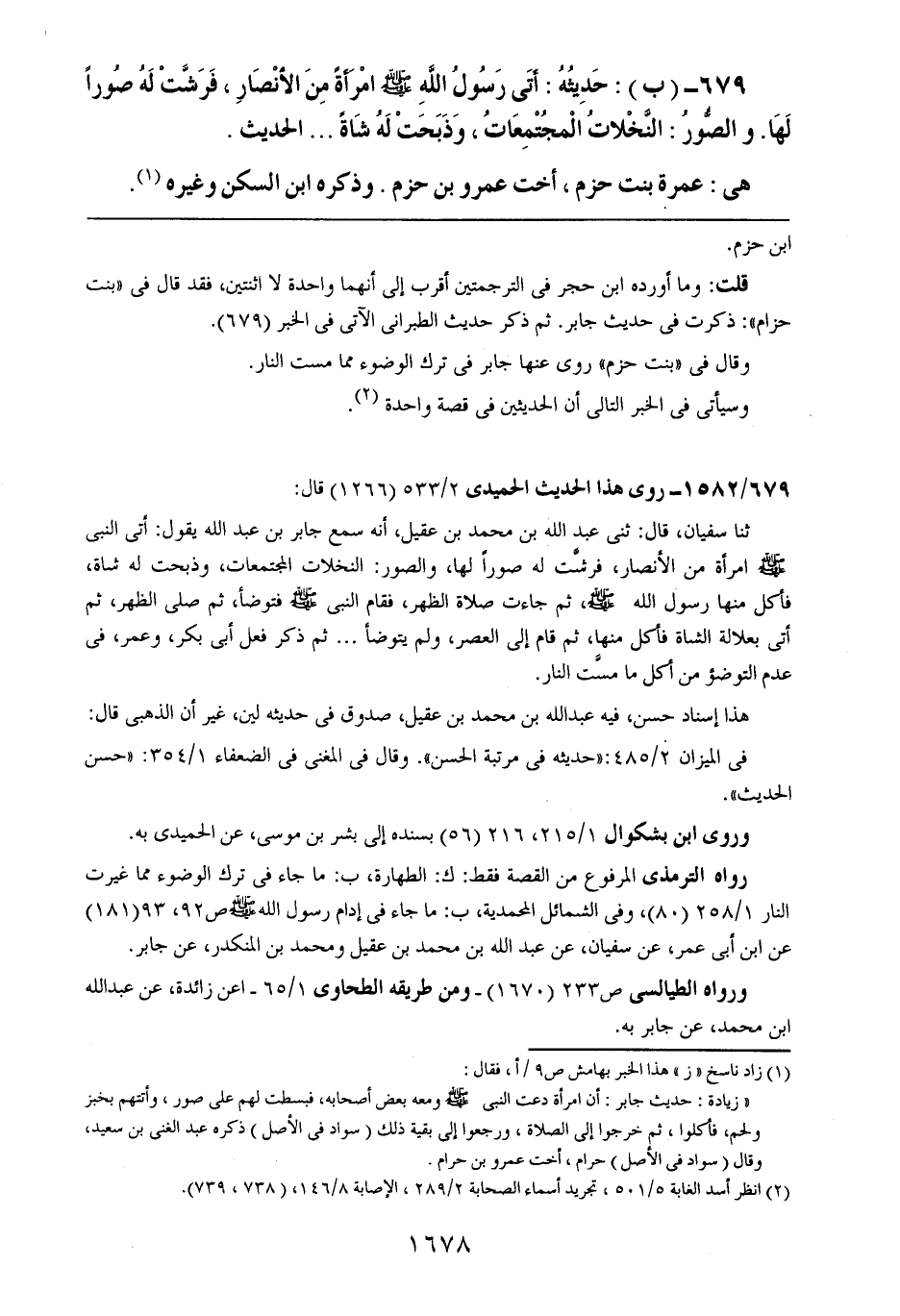 679- (ب): حديثه: أتى رسول الله صلى الله عليه وسلم امرأةً من الأنصار، فرشت له صوراً لها. والصور: النخلات المجتمعات، وذبحت له شاةً .. .. الحديث.