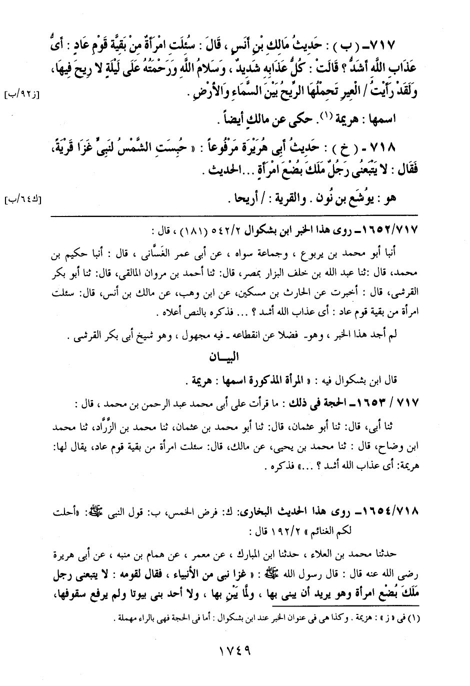 718- (خ): حديث أبي هريرة مرفوعاً: ((حبست الشمس لنبيٍ غزا قريةً، فقال: لا يتبعني رجلٌ ملك بضع امرأةٍ .. .. الحديث.
