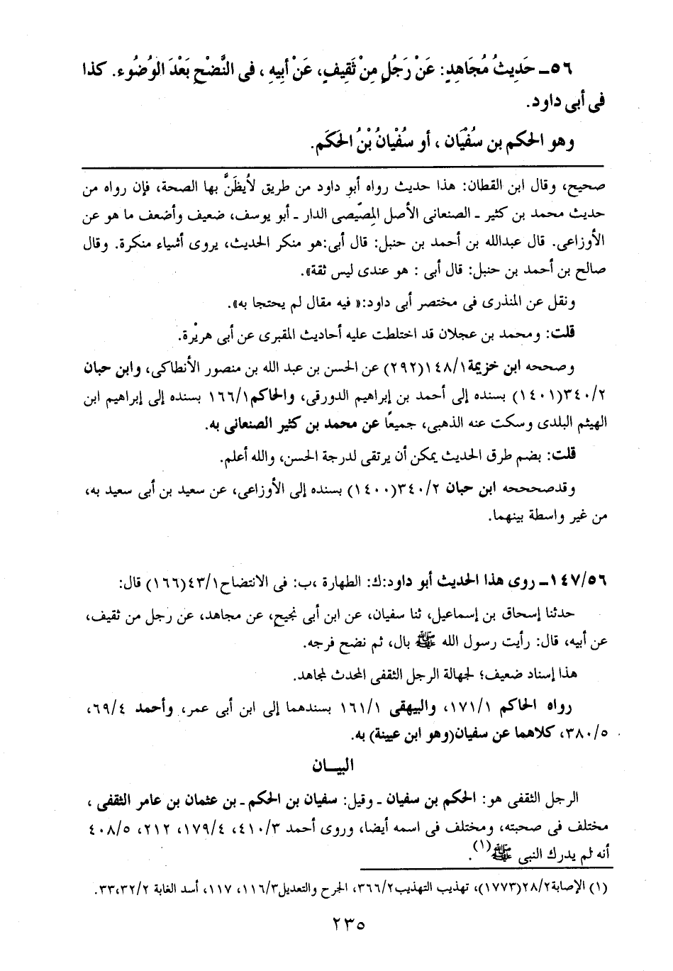 56- حديث مجاهدٍ: عن رجلٍ من ثقيفٍ، عن أبيه، في النضح بعد الوضوء. كذا في أبي داود.