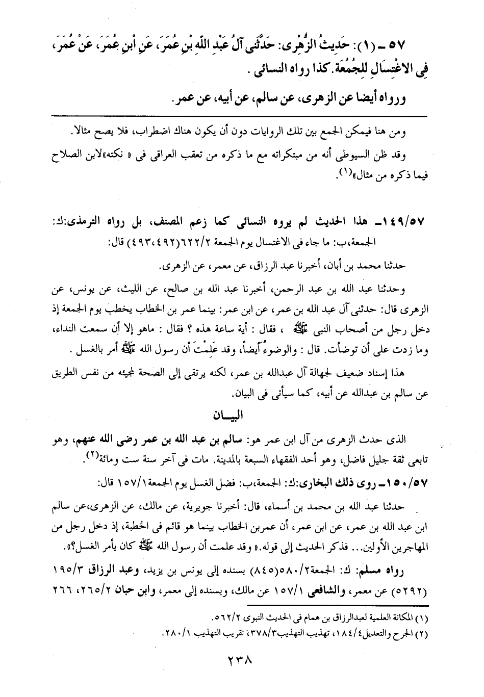 57- (1): حديث الزهري: حدثني آل عبد الله بن عمر، عن ابن عمر، عن عمر، في الاغتسال للجمعة. كذا رواه النسائي.