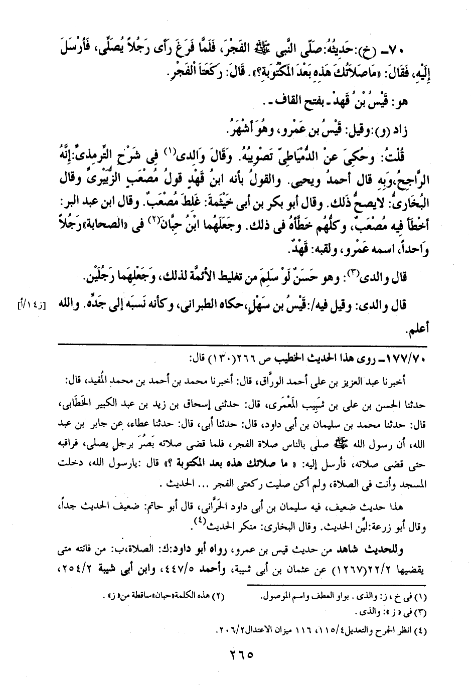 70- (خ): حديثه: صلى النبي صلى الله عليه وسلم الفجر، فلما فرغ رأى رجلاً يصلي، فأرسل إليه، فقال: ((ما صلاتك هذه بعد المكتوبة؟)). قال: ركعتا الفجر.