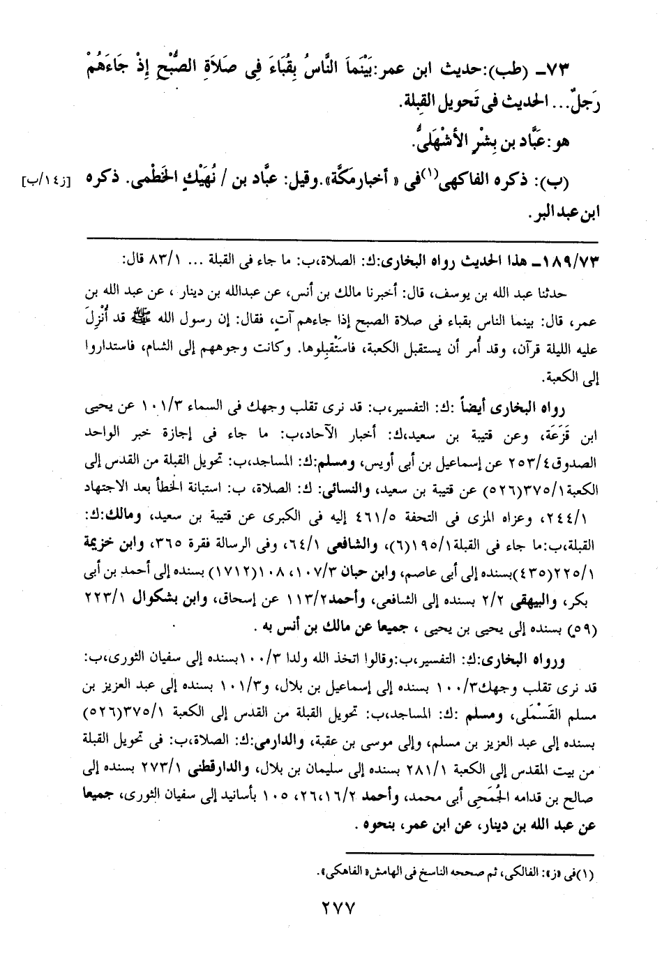 73- (طب): حديث ابن عمر: بينما الناس بقباء في صلاة الصبح إذ جاءهم رجلٌ .. .. الحديث في تحويل القبلة.