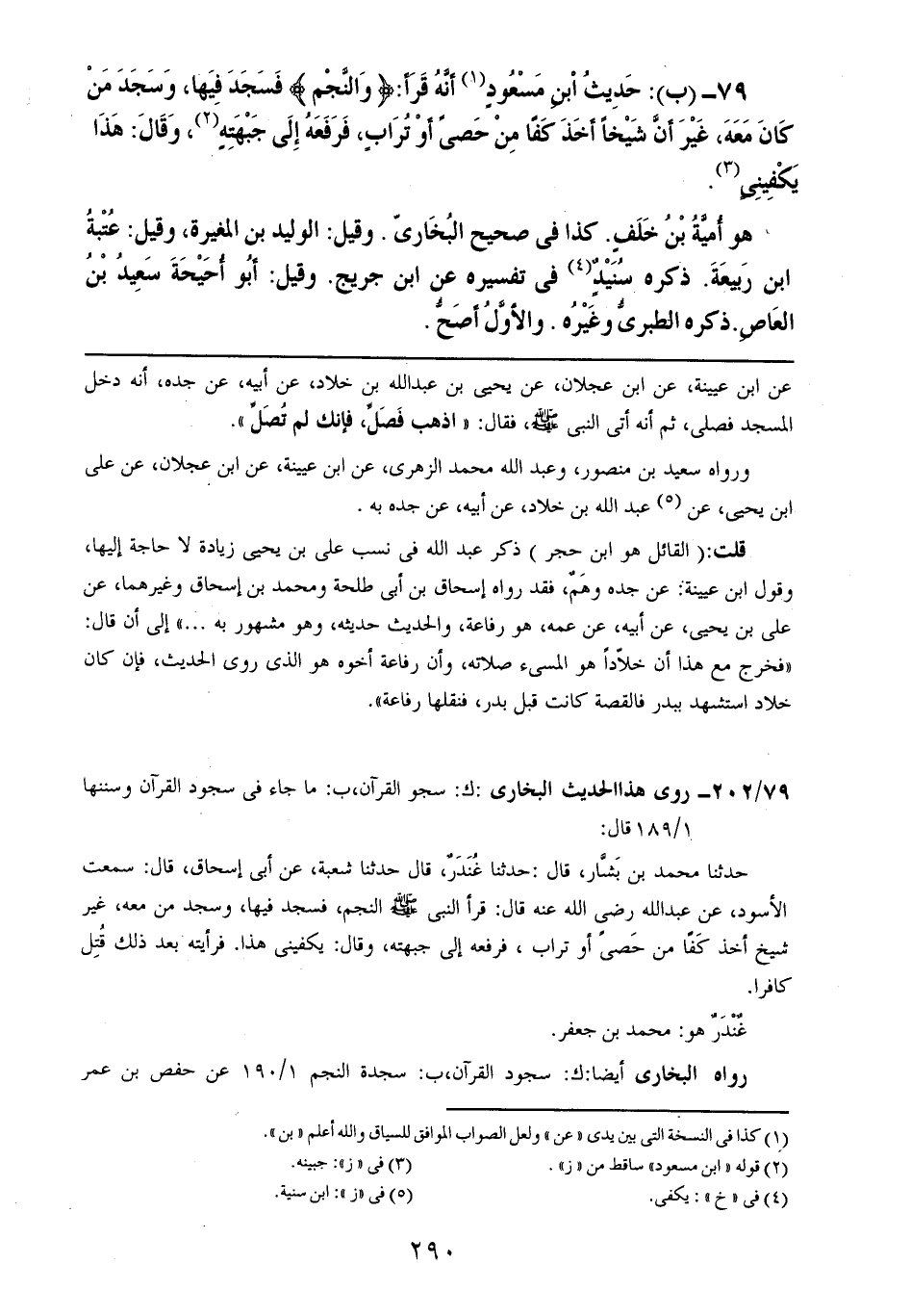 79- (ب): حديث ابن مسعودٍ أنه قرأ: {والنجم} فسجد فيها، وسجد من كان معه، غير أن شيخاً أخذ كفاً من حصىً أو ترابٍ، فرفعه إلى جبهته، وقال: هذا يكفيني.