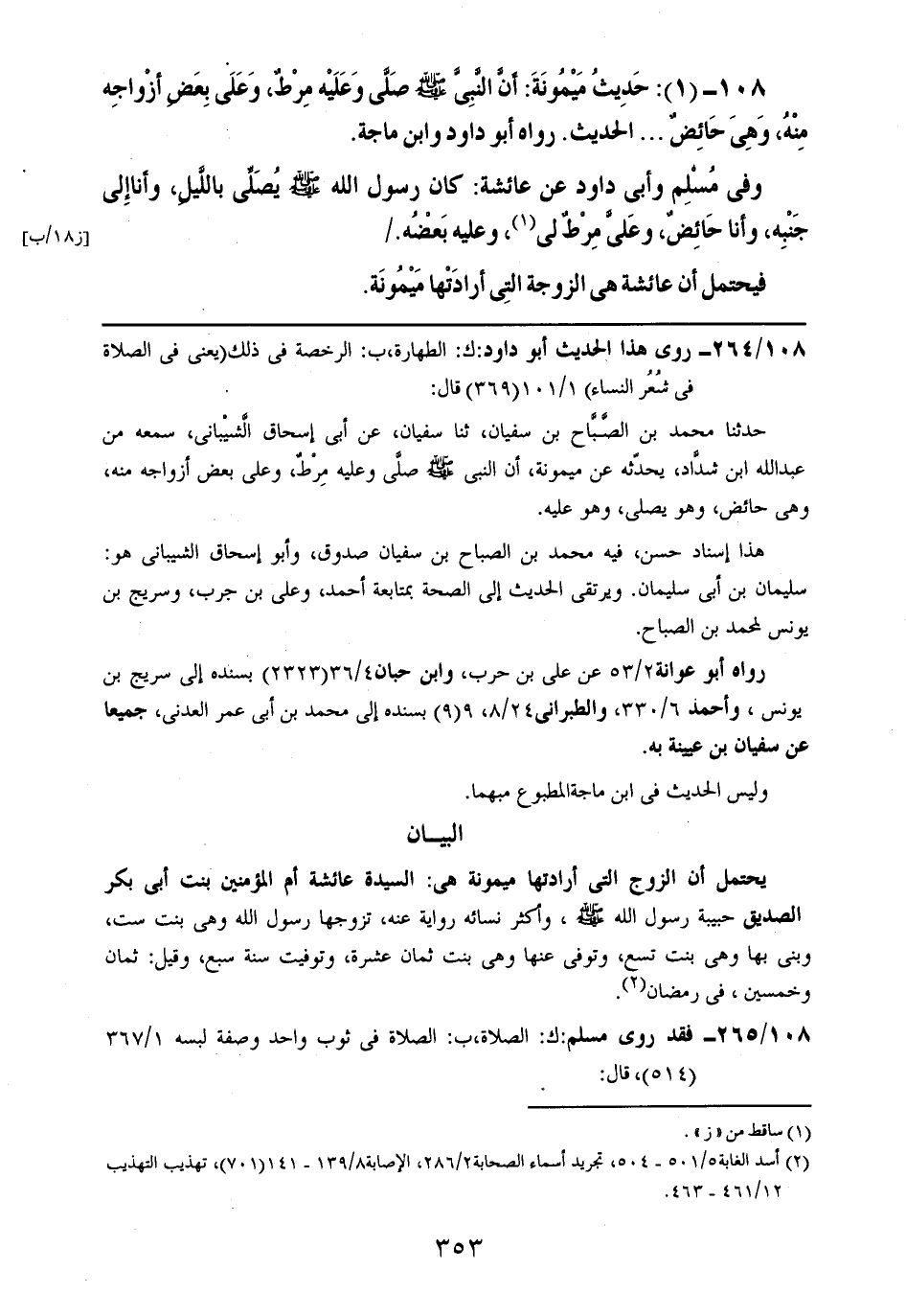 108- (1): حديث ميمونة: أن النبي صلى الله عليه وسلم صلى وعليه مرطٌ، وعلى بعض أزواجه منه، وهي حائضٌ .. .. الحديث. رواه أبو داود وابن ماجة.