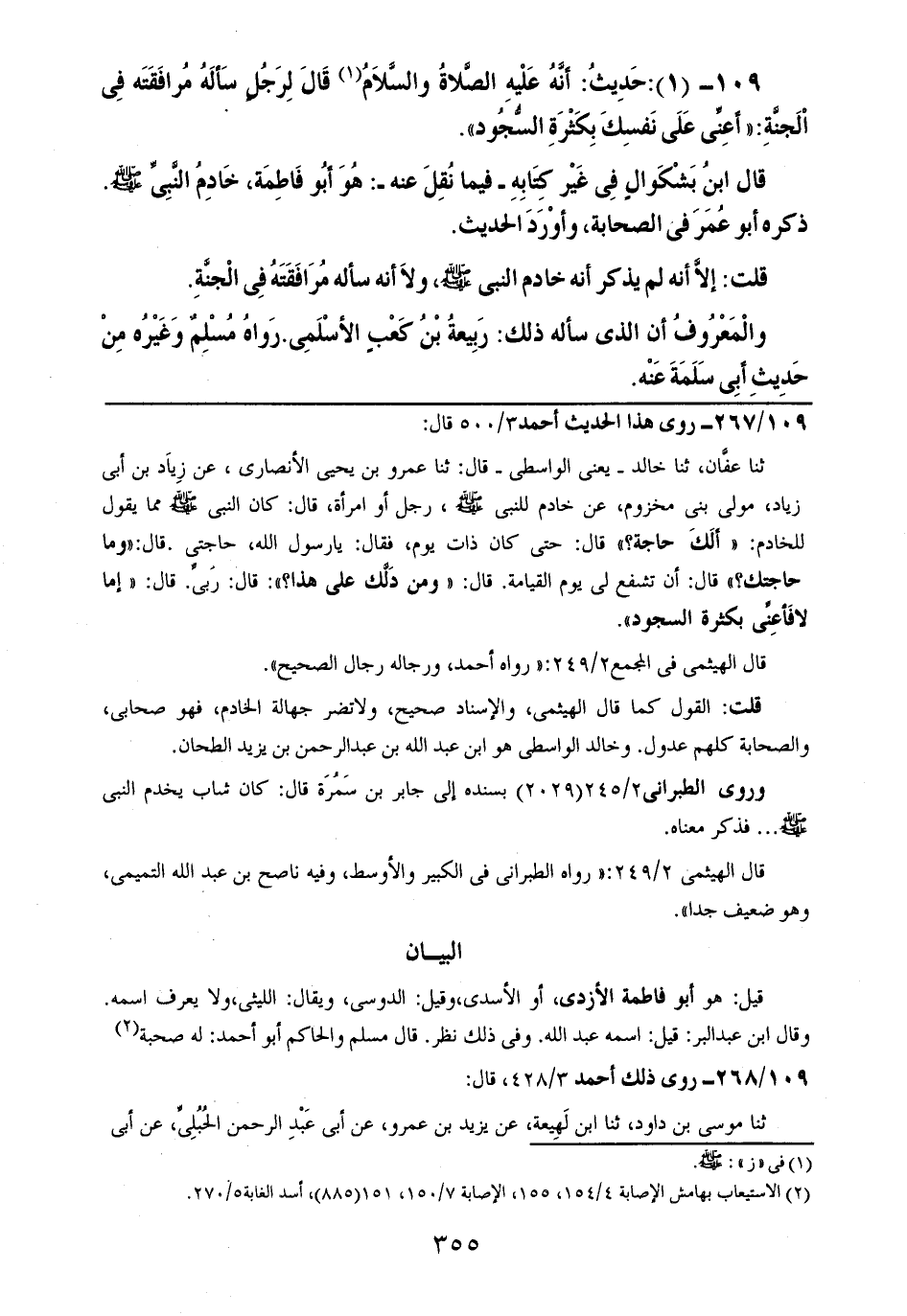 109- (1): حديث: أنه عليه الصلاة والسلام قال لرجلٍ سأله مرافقته في الجنة: ((أعني على نفسك بكثرة السجود)).