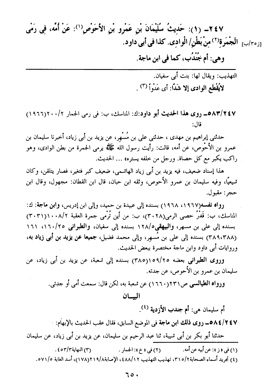 247- (1): حديث سليمان بن عمرو بن الأحوص: عن أمه، في رمي الجمرة من بطن الوادي. كذا في أبي داود.