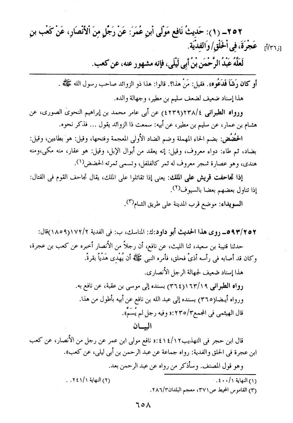 252- (1): حديث نافع مولى ابن عمر: عن رجلٍ من الأنصار، عن كعب بن عجرة، في الحلق والفدية.