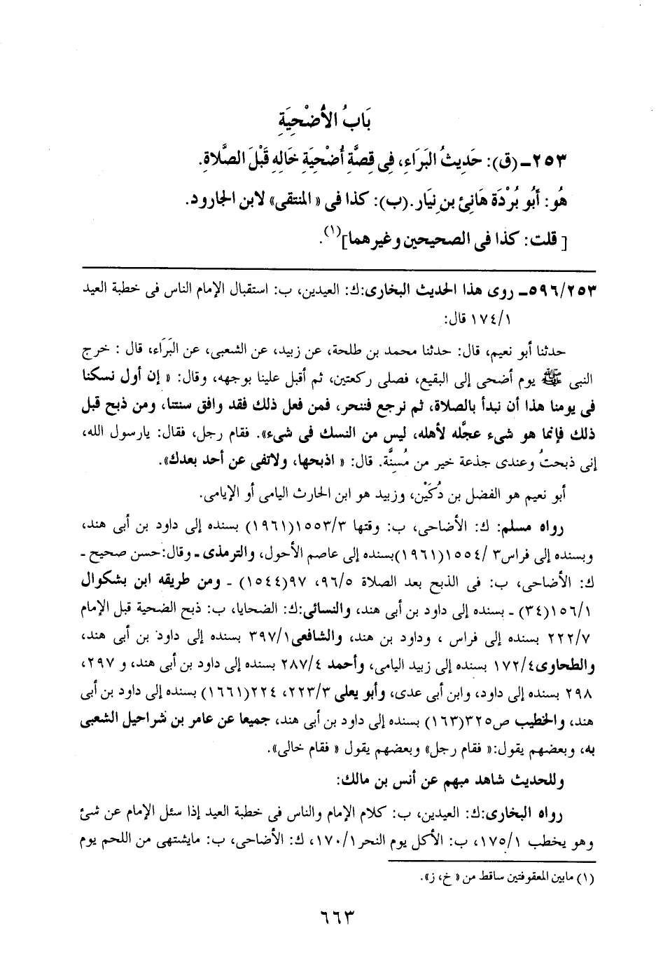 253 - (ق): حديث البراء، في قصة أضحية خاله قبل الصلاة.