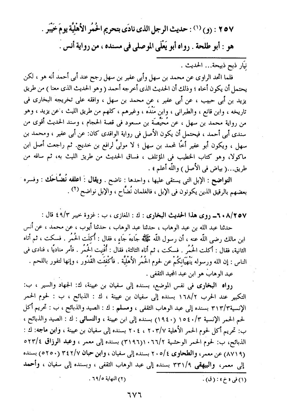 257- (و): حديث الرجل الذي نادى بتحريم الحمر الأهلية يوم خيبر.