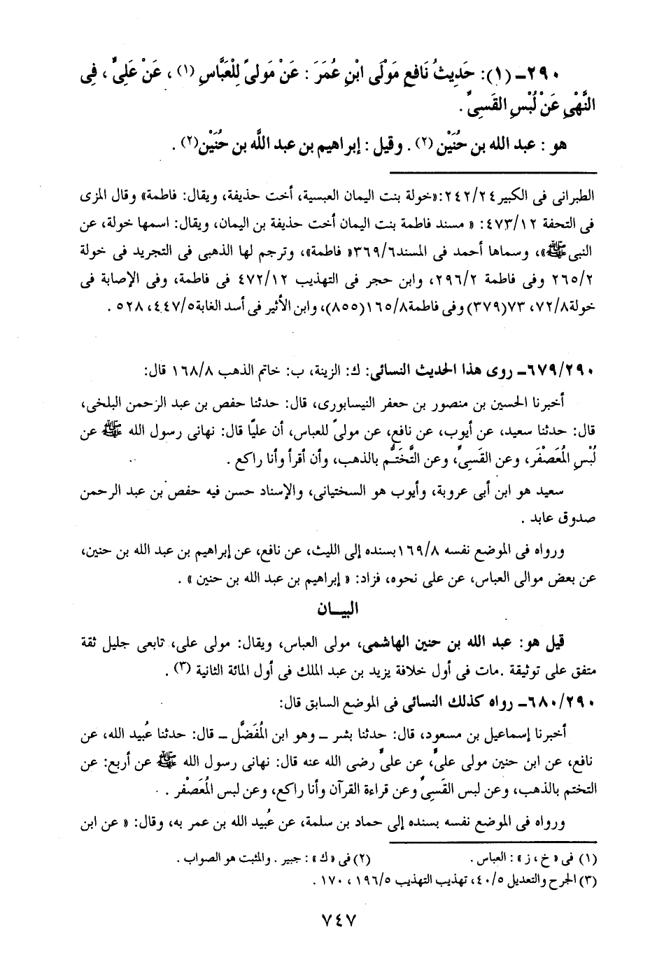 290- (1): حديث نافع مولى ابن عمر: عن مولى للعباس، عن علي، في النهي عن لبس القسي.