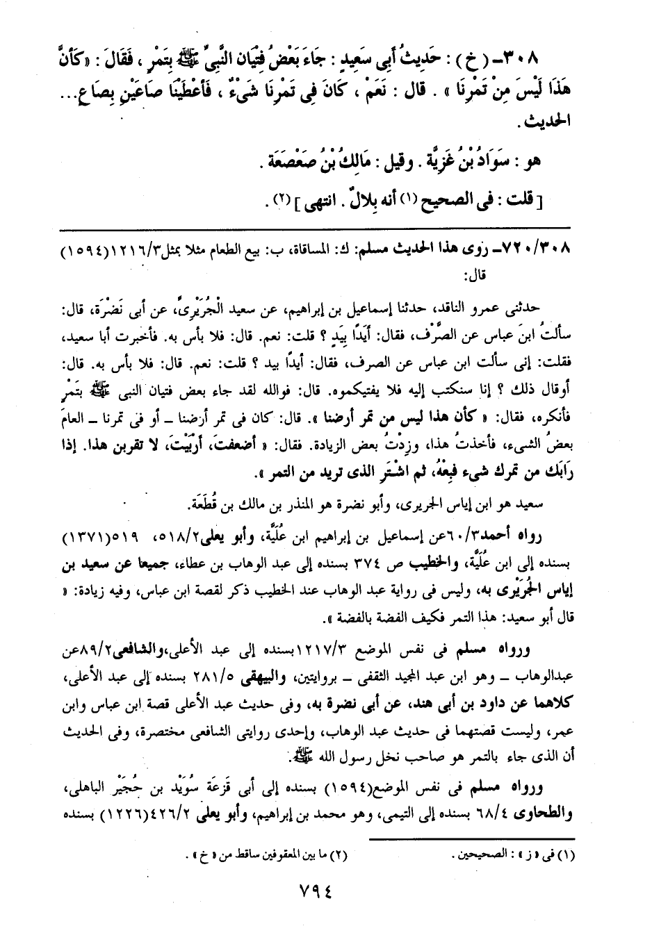 308- (خ): حديث أبي سعيدٍ: جاء بعض فتيان النبي صلى الله عليه وسلم بتمرٍ، فقال: ((كأن هذا ليس من تمرنا)). قال: نعم، كان في تمرنا شيءٌ، فأعطينا صاعين بصاعٍ .. .. الحديث.