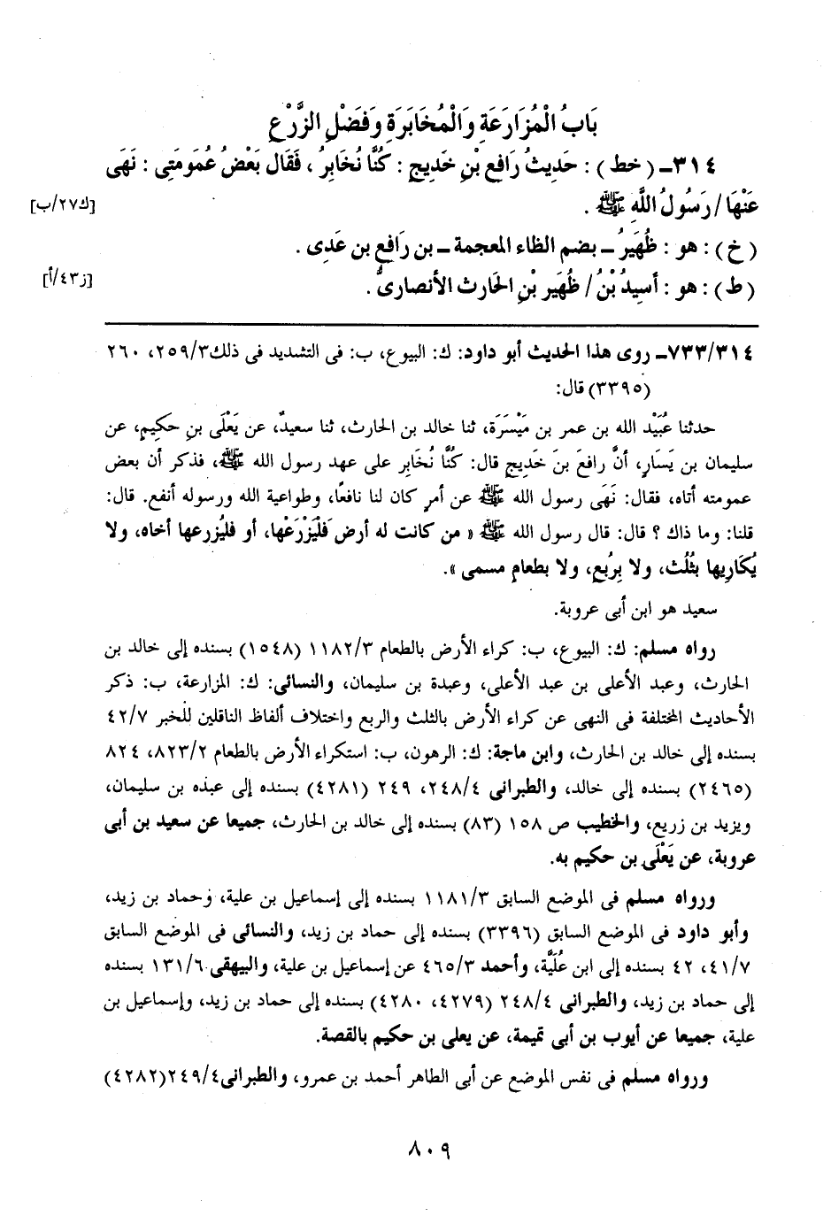 314- (خط): حديث رافع بن خديجٍ: كنا نخابر، فقال بعض عمومتي: نهى عنها رسول الله صلى الله عليه وسلم.