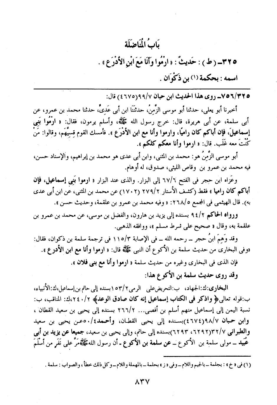 325- (ط): حديثٌ: ((ارموا وأنا مع ابن الأدرع)).