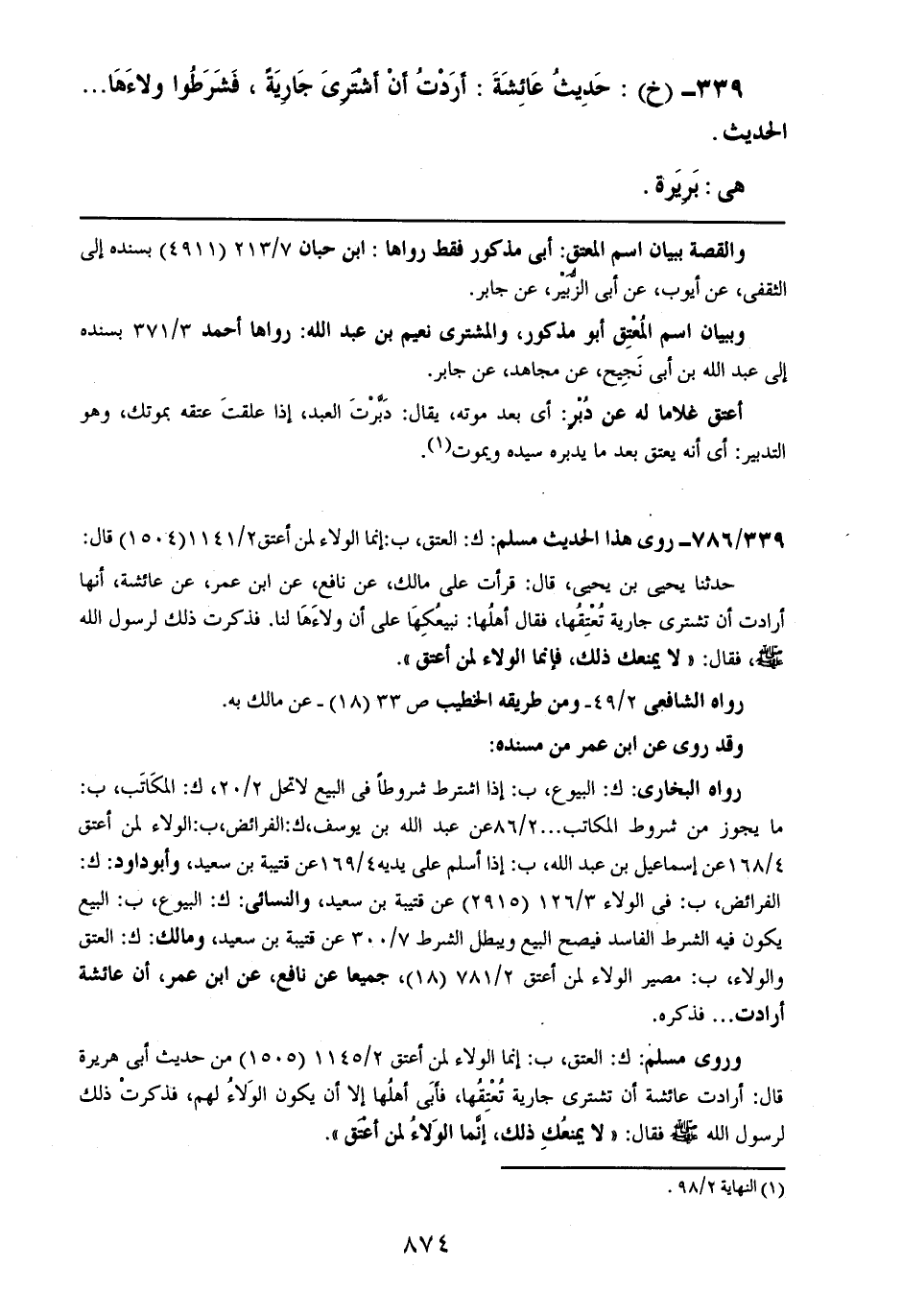 339- (خ): حديث عائشة: أردت أن أشتري جاريةً، فشرطوا ولاءها .. .. الحديث.