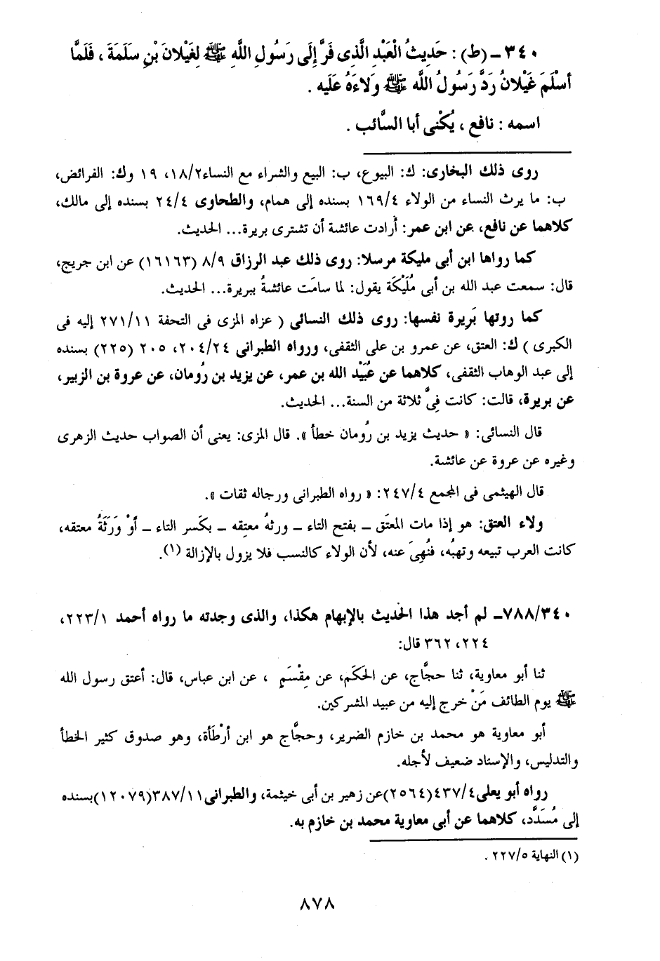 340- (ط): حديث العبد الذي فر إلى رسول الله صلى الله عليه وسلم لغيلان بن سلمة، فلما أسلم غيلان رد رسول الله صلى الله عليه وسلم ولاءه عليه.