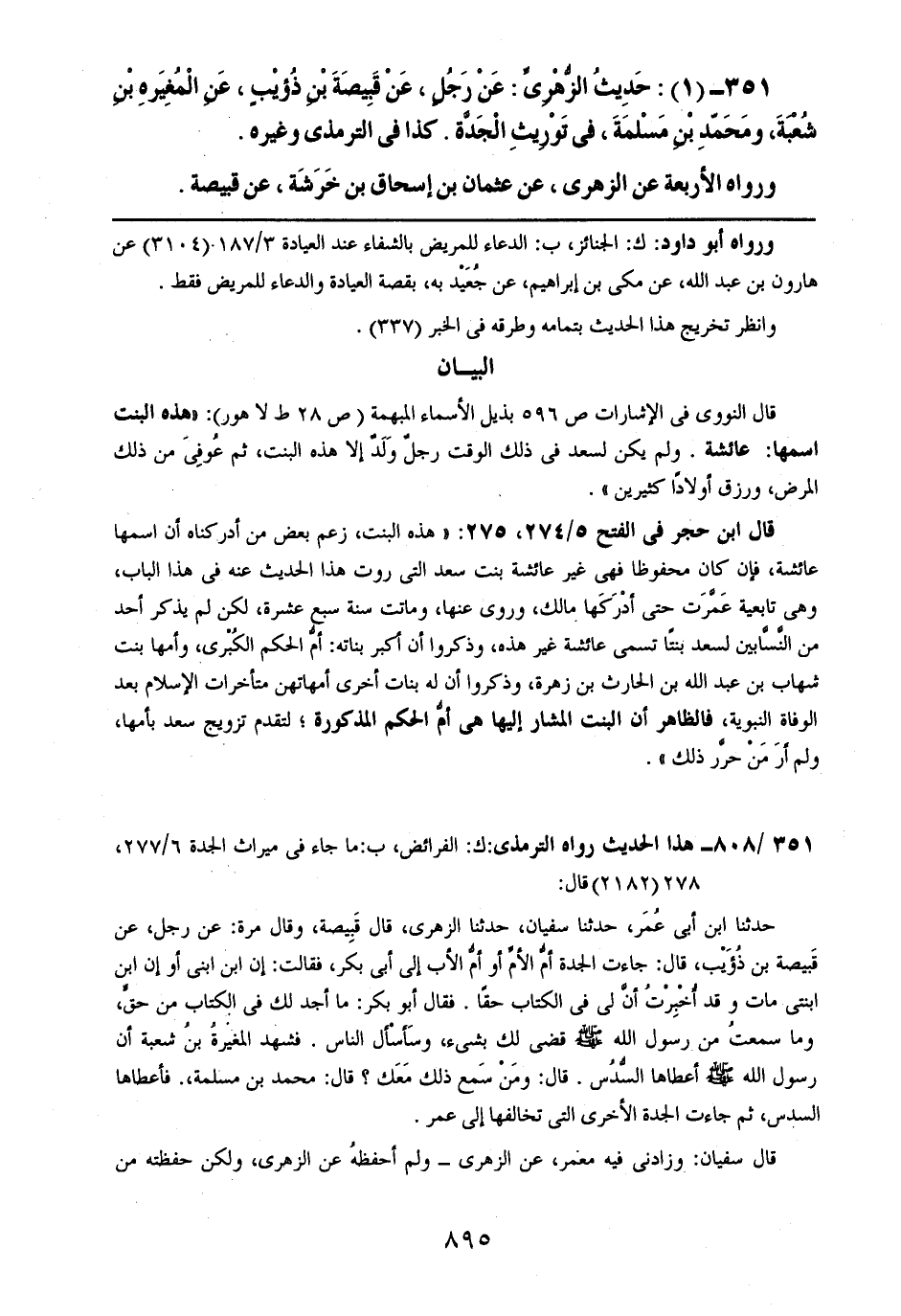 351- (1): حديث الزهري: عن رجلٍ، عن قبيصة بن ذؤيبٍ، عن المغيرة بن شعبة، ومحمد بن مسلمة، في توريث الجدة. كذا في الترمذي وغيره.