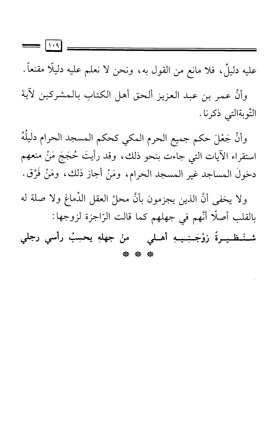 وأن جَعْلَ حكم جميع الحرم المكيّ كحكم المسجد الحرام دليلُهُ استقراء الآيات التي جاءت بنحو ذلك، وقد رأيتَ حُجَجَ مَنْ منعهم دخولَ المساجد غير المسجد الحرام، ومَنْ أجاز ذلك، ومَنْ فَرَّق.