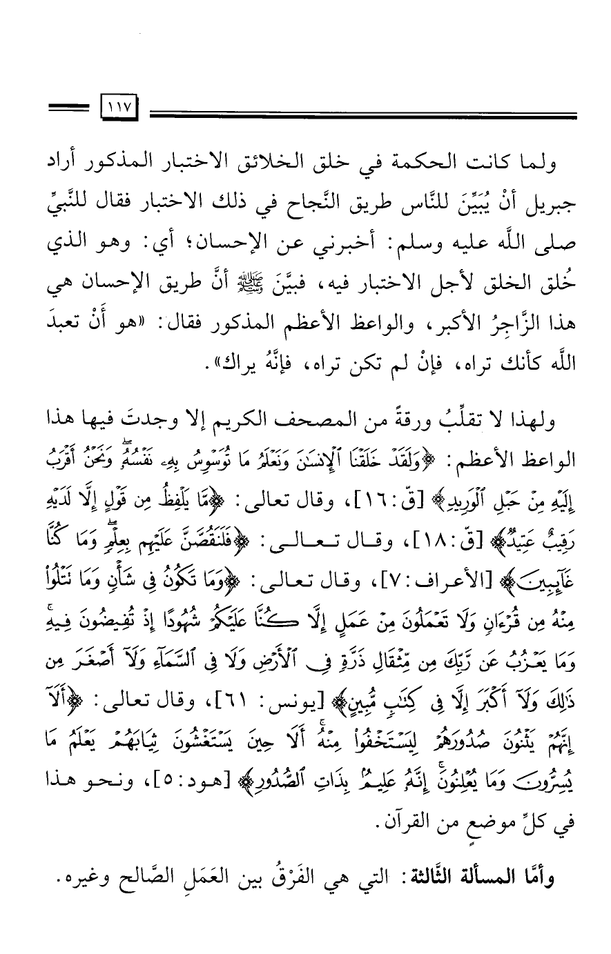 وأمَّا المسألة الثَّالثة: التي هي الفَرْقُ بين العَمَلِ الصَّالح وغيره.