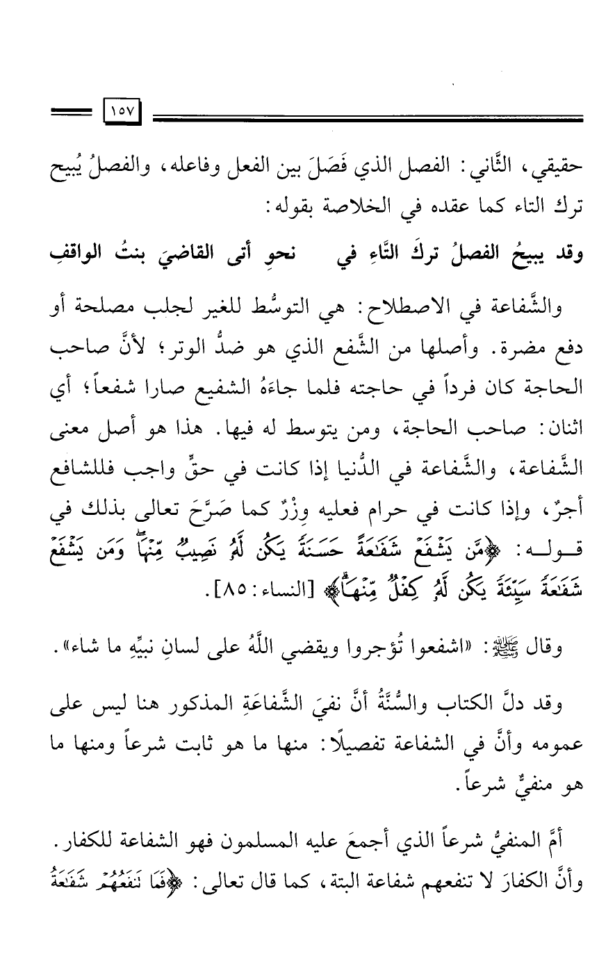 وقد دلَّ الكتاب والسُّنَّةُ أن نفيَ الشَّفاعَةِ المذكور هنا ليس على عمومه وأن في الشَّفاعة تفصيلًا: منها ما هو ثابت شرعًا ومنها ما هو منفي شرعًا.