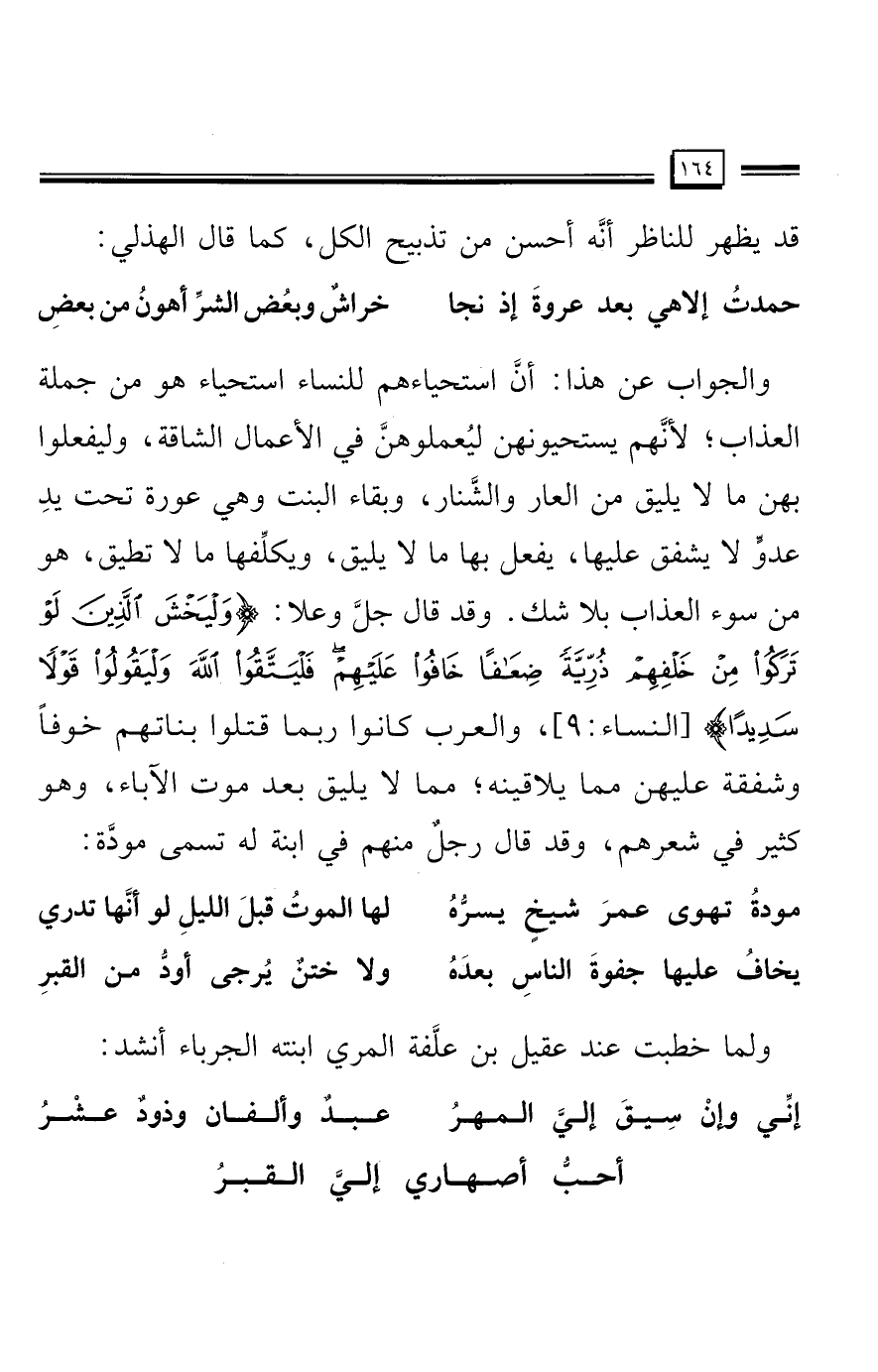 قد يظهر للناظر أنَّه أحسن من تذبيح الكل، كما قال الهذلي: