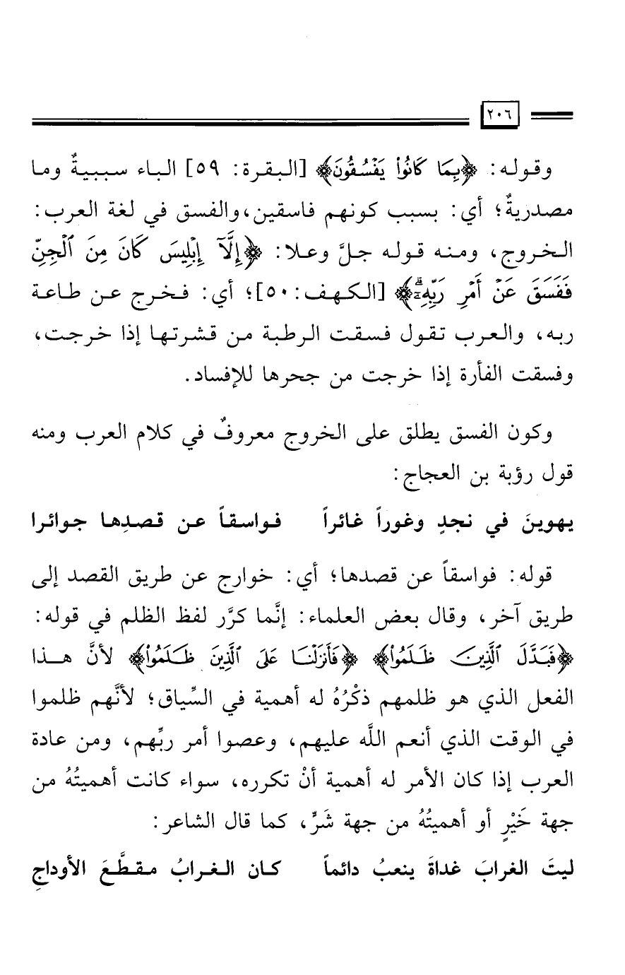 وكون الفسق يطلق على الخروج معروفٌ في كلام العرب ومنه قول رؤبة بن العجاج: