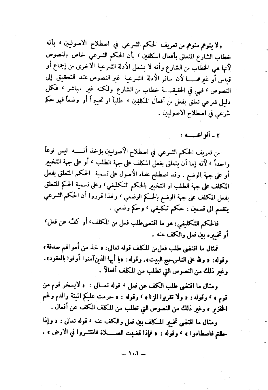 ولا يتوهّم متوهّم من تعريف الحكم الشرعي في اصطلاح الأصوليين، بأنه خطاب الشارع المتعلق بأفعال المكلفين، بأن الحكم الشرعي خاص بالنصوص لأنها هي الخطاب من الشارع وأنه لا يشمل الأدلة الشرعية الأخرى من إجماع أو قياس أو غيرها لأن سائر الأدلة الشرعية غير النصوص عند التحقيق تعود إلى النصوص، فهو في الحقيقة خطاب من الشارع ولكنه غير مباشر، فكل دليل شرعي تعلق بفعل من أفعال المكلفين، طلبا أو تخييرا أو وضعا فهو حكم شرعي في اصطلاح الأصوليين.