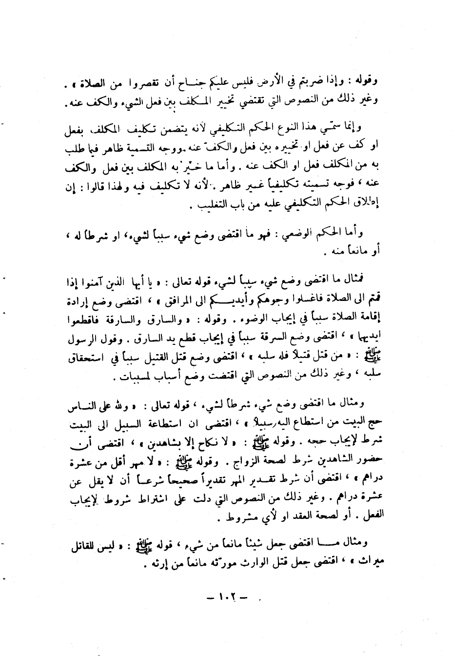 ومثال ما اقتضى جعل شيء مانعا من شيء، قوله - صلى الله عليه وسلم -: "ليس للقاتل ميراث" اقتضى جعل قتل الوارث مورثه مانعا من إرثه.