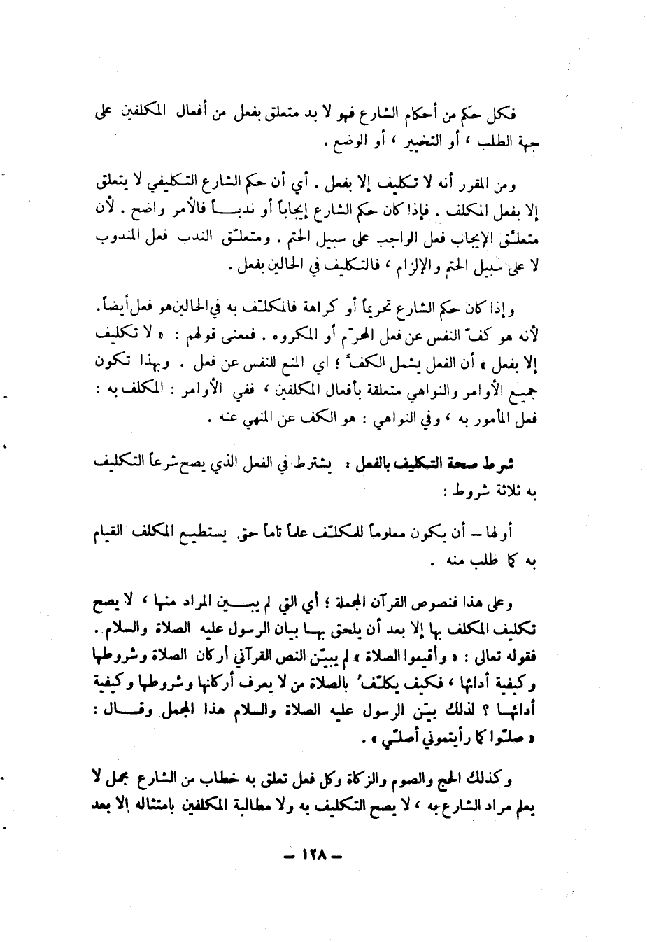 شرط صحة التكليف بالفعل: يشترط في الفعل الذي يصح شرعا التكليف به ثلاثة شروط: