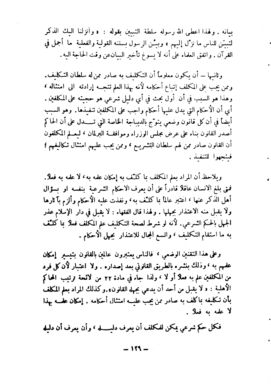 وثانيها: أن يكون معلوما أن التكليف به صادر ممن له سلطان التكليف، وممن يجب على المكلف اتباع أحكامه لأنه بهذا العلم تتجه إرادته إلى امتثاله، وهذا هو السبب في أن أول بحث في أي دليل شرعي هو حجيته على المكلفين، أي أن الأحكام التي يدل عليها أحكام واجب على المكلفين تنفيذها. وهو السبب أيضا في أن كل قانون وضعي يتوجب بالديباجة الخاصة التي تدل على أن الحاكم أصدر القانون بناء على عرض مجلس الوزراء وموافقة البرلمان، ليعلم المكلفون أن القانون صادر ممن لهم سلطان التشريع، وممن يجب عليهم امتثال تكاليفهم؛ فيتجهوا للتنفيذ.