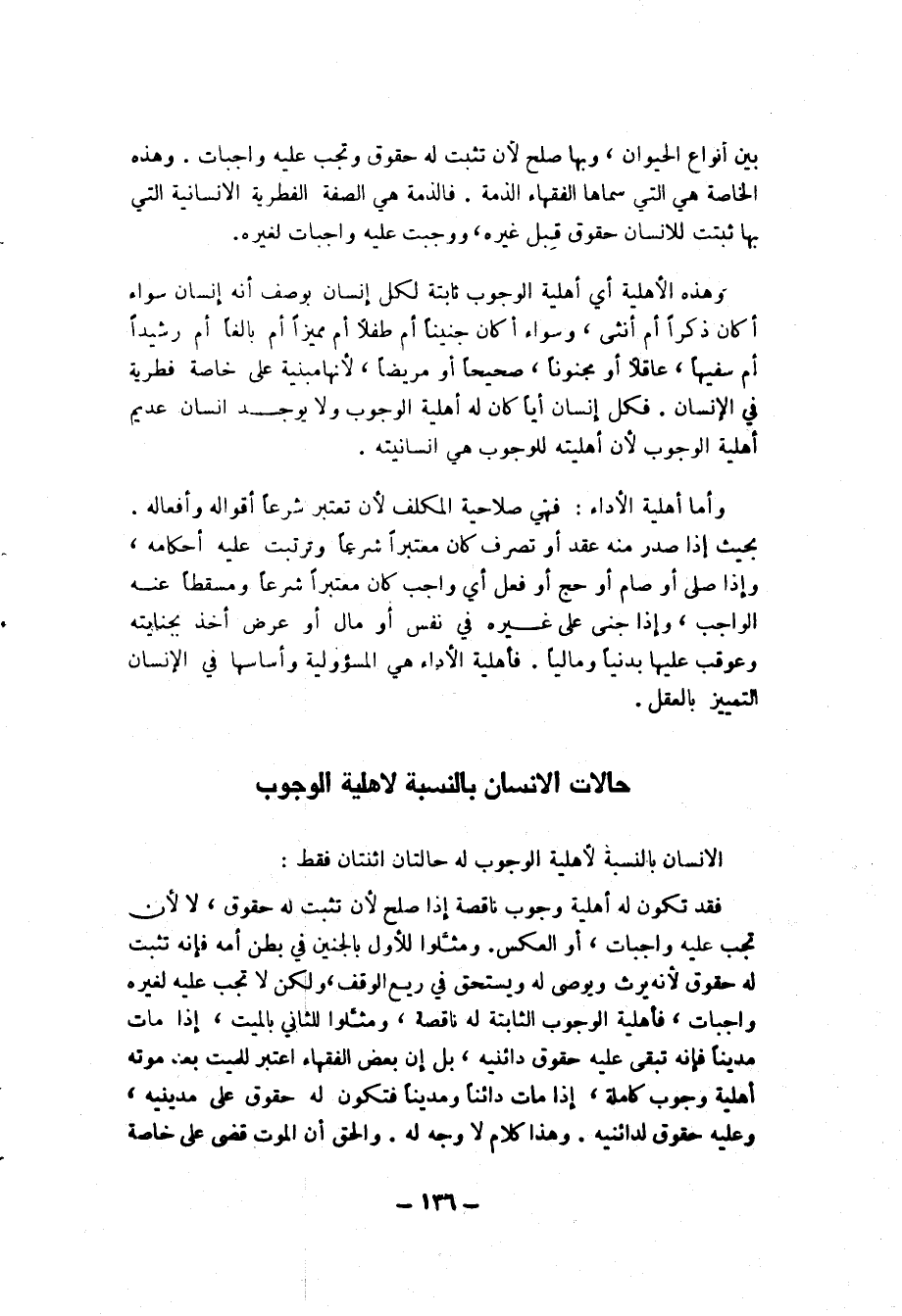 بين أنواع الحيوان، وبها صلح لأن تثبت له حقوق وتجب عليه واجبات، وهذه الخاصة هي التي سماها الفقهاء الذمة، فالذمة هي الصفة الفطرية الإنسانية التي به ثبتت للإنسان حقوق قبل غيره، ووجبت عليه واجبات لغيره.