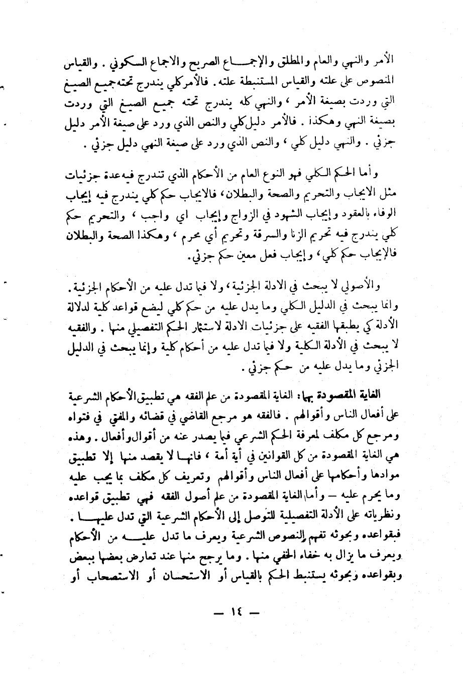 والفقيه لا يبحث في الأدلة الكلية ولا فيما تدل عليه من أحكام كلية وإنما يبحث في الدليل الجزئي وما يدل عليه من حكم جزئي.