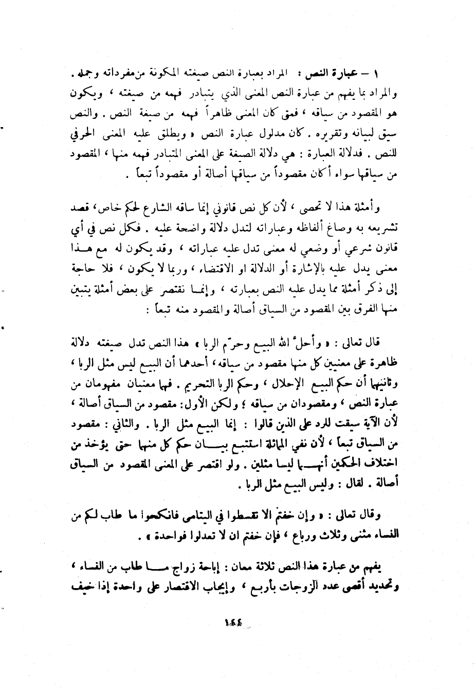المراد بعبارة النص صيغته المكونة من مفرداته وجملة. والمراد بما يفهم من عبارة النص المعنى الذي يتبادر فهمه من صيغته، ويكون هو المقصود من سياقه، فمتى كان المعنى ظاهرا فهمه من صيغة النص، والنص سيق لبيانه وتقريره، كان مدلول عبارة النص " ويطلق عليه المعنى الحرفي للنص". فدلالة العبارة: هي دلالة الصيغة على المعنى المتبادر فهمه منها، المقصود من سياقها. سواء أكان مقصودا من سياقها أصالة أو مقصودا تبعا.