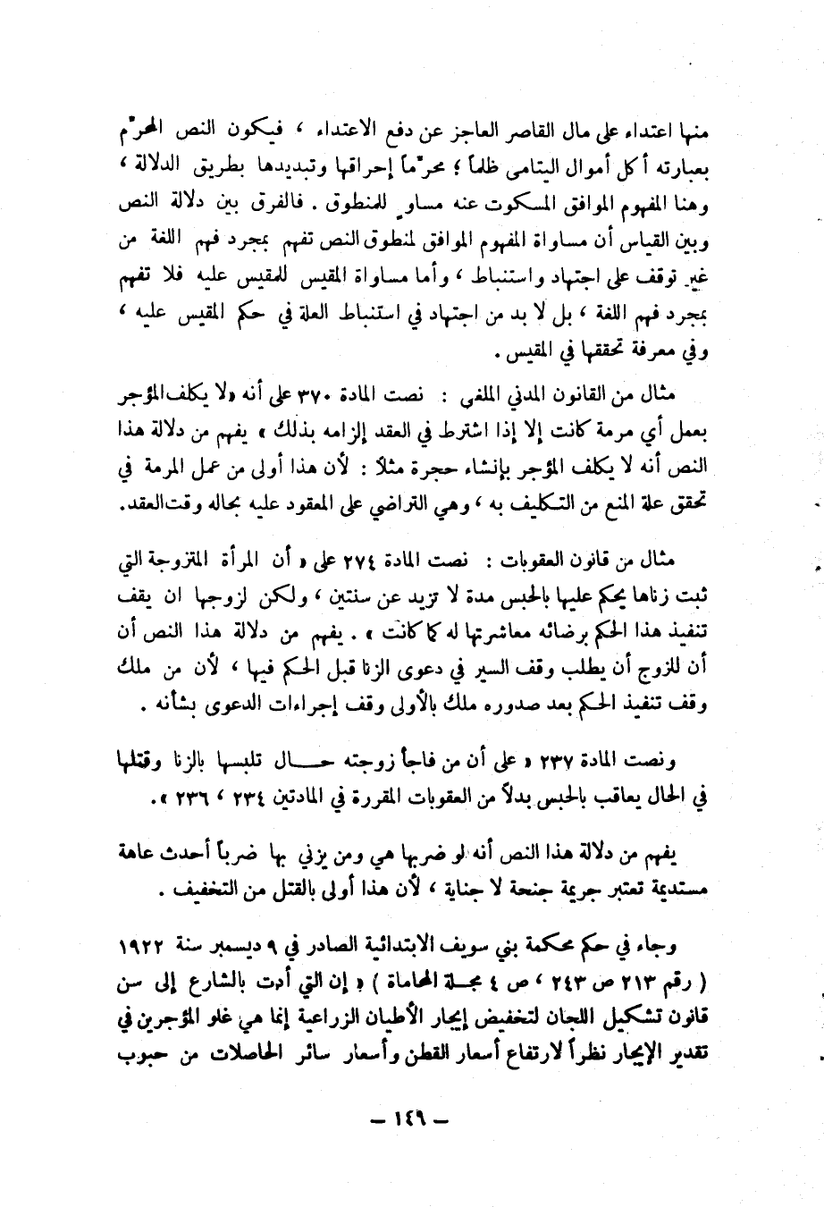 وجاء في حكم محكمة بني سويف الابتدائية الصادر في 9 ديسمبر سنة 1922 (رقم 213 ص 243، ص 4 مجلة المحاماة) : "إن التي أدت بالشارع إلى سن قانون تشكيل اللجان لتخفيض إيجار الأطيان الزراعية إنما هو غلو المؤجرين في تقدير الإيجار نظرا لارتفاع أسعار القطن وأسعار سائر الحاصلات من حبوب