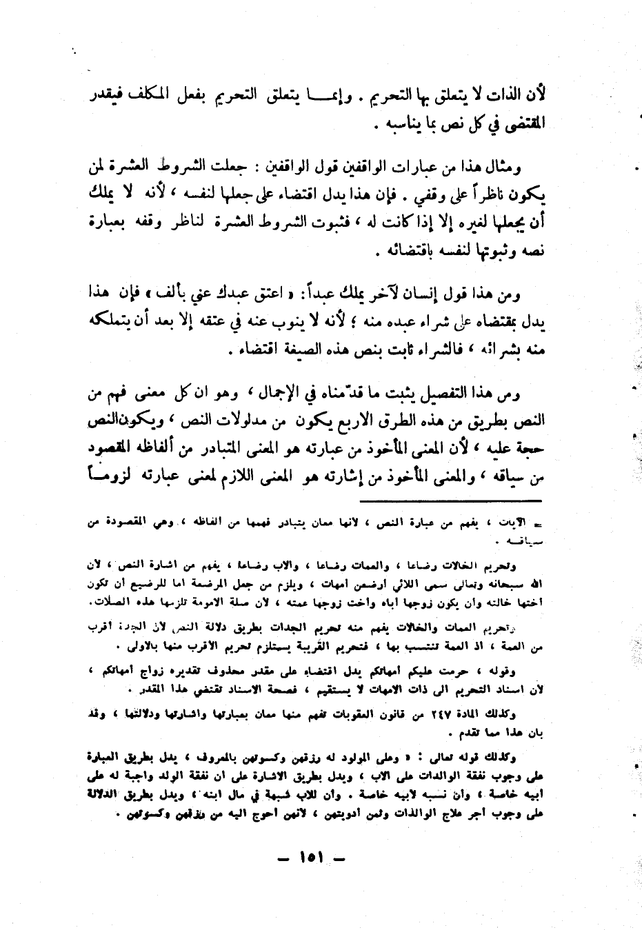 ومن هذا التفصيل يثبت ما قدمنه في الإجمال، وهو أن كل معنى فهم من النص بطريق من هذه الطرق الأربع يكون من مدلولات النص، ويكون النص حجة عليه، لأن المعنى المأخوذ من عباراته هو المعنى المتبادر من ألفاظه المقصود من سياقه، والمعنى المأخوذ من إشارته هو المعنى اللازم لمعنى عبارته لزوما لا