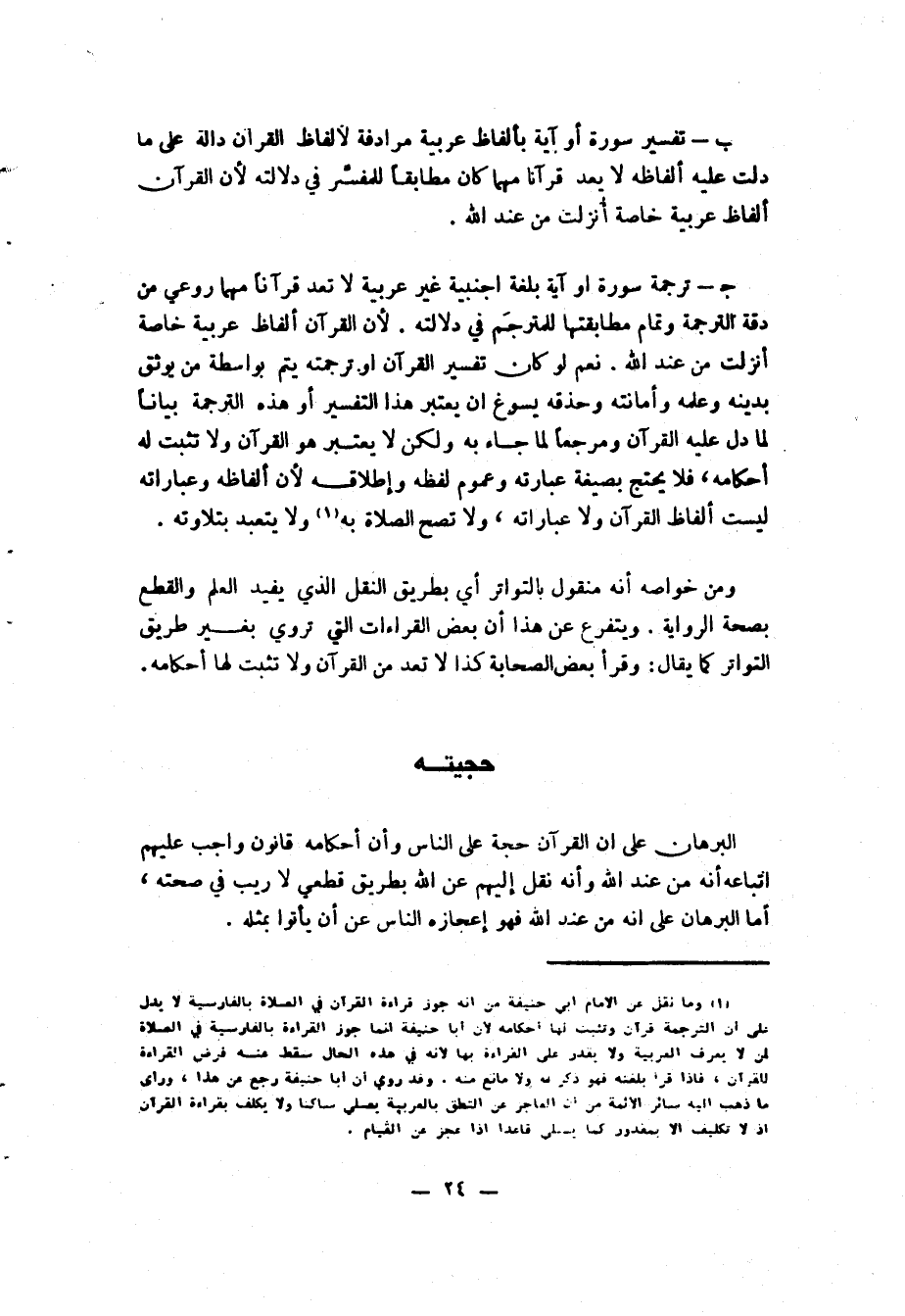 البرهان على أن القرآن حجة على الناس وأن أحكامه قانون واجب عليهم اتّباعه أنه من عند الله وأنه نقل إليهم عن الله بطريق قطعي لا ريب في صحته.