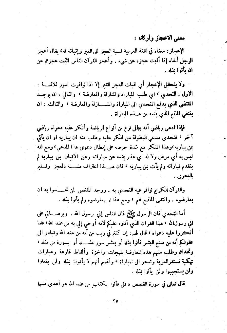 ولا يتحقق الإعجاز أي إثبات العجز للغير إلا إذا توافرت أمور ثلاثة: