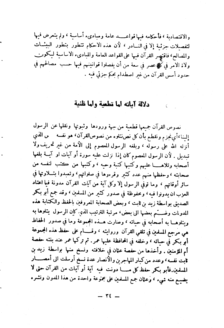 والاقتصادية، فأحكامه فيها قواعد عامة ومبادئي أساسية، ولم يتعرض فيها لتفصيلات جزئية إلا في النادر، لأن هذه الأحكام تتطور بتطور البيئات والمصالح، فاقتصر القرآن فيها على القواعد العامة والمبادئ الأساسية ليكون ولاة الأمر في كل عصر في سعة من أن يفصلوا قوانينهم فيها حسب مصالحهم في حدود أسس القرآن من غير اصطدام بحكم جزئي فيه.