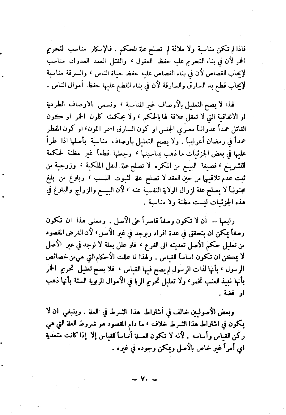 وبعض الأصوليين خالف في اشتراط هذا الشرط في العلة. وينبغي أن لا يكون في اشتراط هذا الشرط خلاف، ما دام المقصود هو شروط العلة التي هي ركن القياس وأساسه، لأنه لا تكون العلة أساسا للقياس إلا إذا كانت متعدية أي أمراً غير خاص بالأصل ويمكن وجوده في غيره.