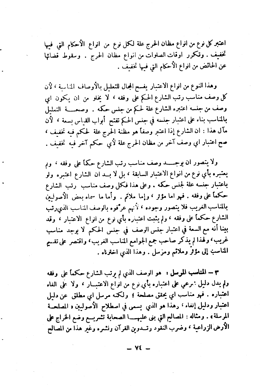 اعتبر كل نوع من أنواع مظان الحرج علة لكل نوع من أنواع الأحكام التي فيها تخفيف. وتكرر أوقات الصلوات من أنواع مظان الحرج، وسقوط قضائها عن الحائض من أنواع الأحكام التي فيها تخفيف.